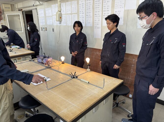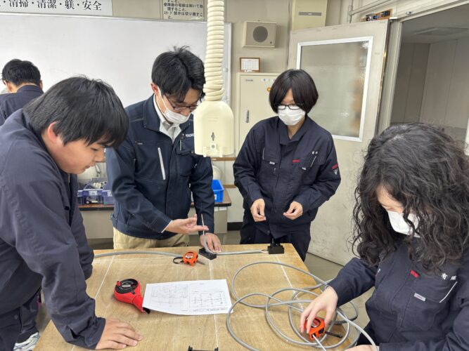 二種・一種電気工事士の資格試験が終わり、実践的な電気工事実習が始まりました。