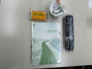 最初にオリジナル折り畳み傘等のノベルティを頂きました。