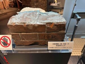 次に舞鶴赤レンガ博物館でレンガの歴史や構造を学び、世界の建設物で使用されていたレンガや蒸気機関車の罐内で使用された耐火レンガなどの見学をしました。