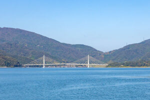 晴れていれば、デッキに出ることもでき、2羽のツルをイメージした、舞鶴クレインブリッジや多くの船艇を間近で見ることができます。