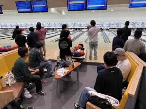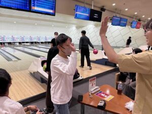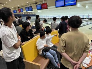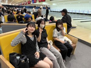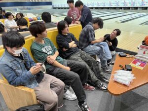 ボウリングを楽しむだけではなく、クラスメイトや先輩と楽しく会話をしながらボウリングをしていました。