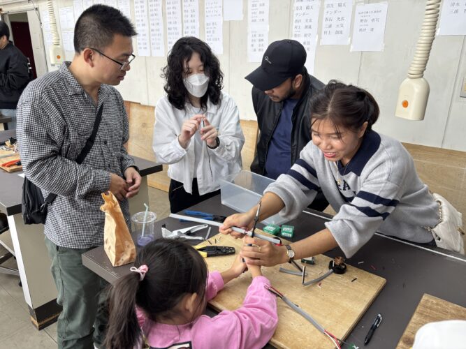 在校生たちは、自分たちが悩みながら学んだ経験から「ここは工具をこう持てばいいよ」と実践的なアドバイスをしていました。