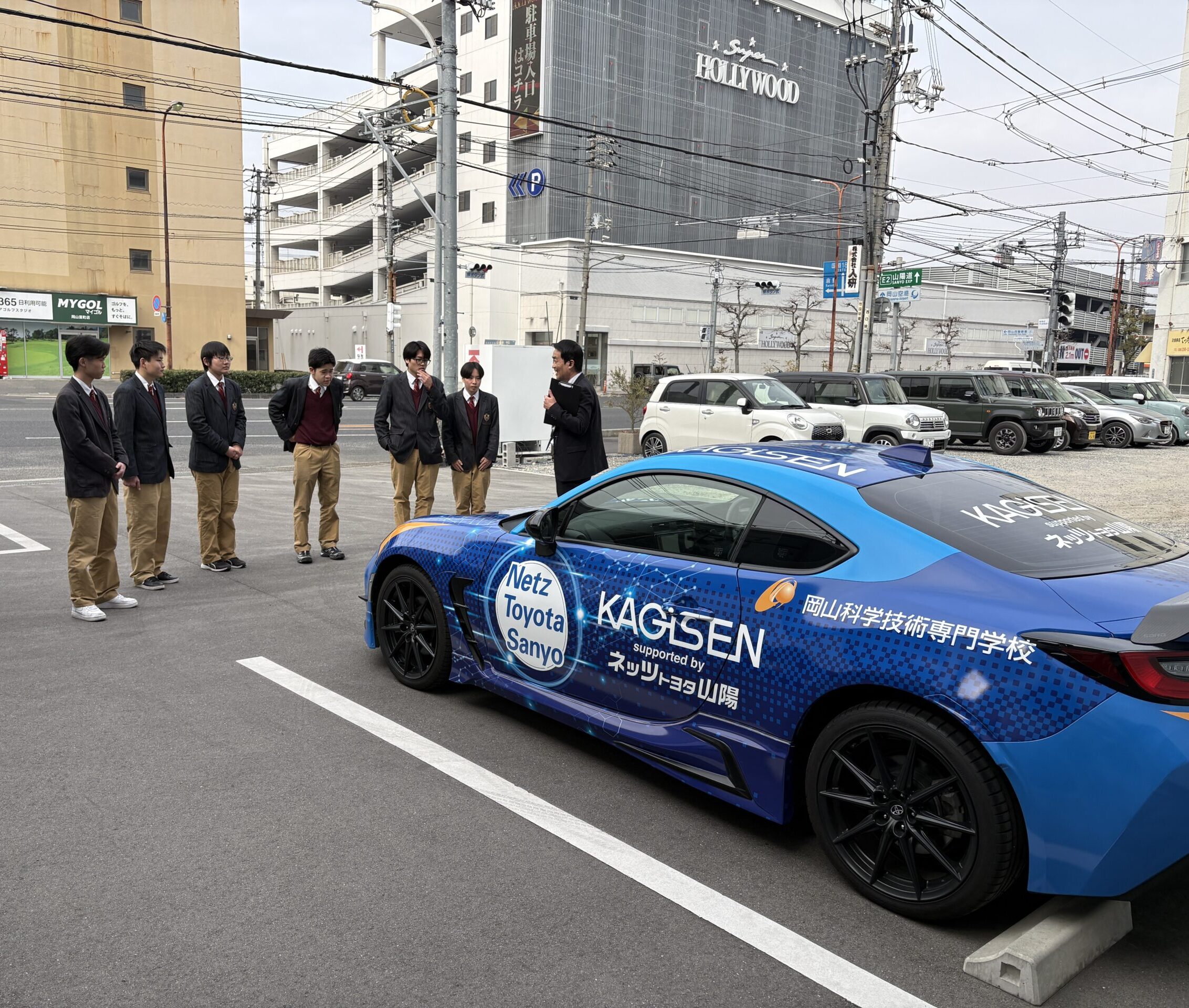 また、今回は時間の都合により、二級自動車工学科・一級自動車工学研究科の実習室までご案内することができませんでしたが、代わりに、最新の自動車をご覧いただく機会として、ネッツトヨタ山陽株式会社様より寄贈いただいた GR86 をご紹介いたしました🚗