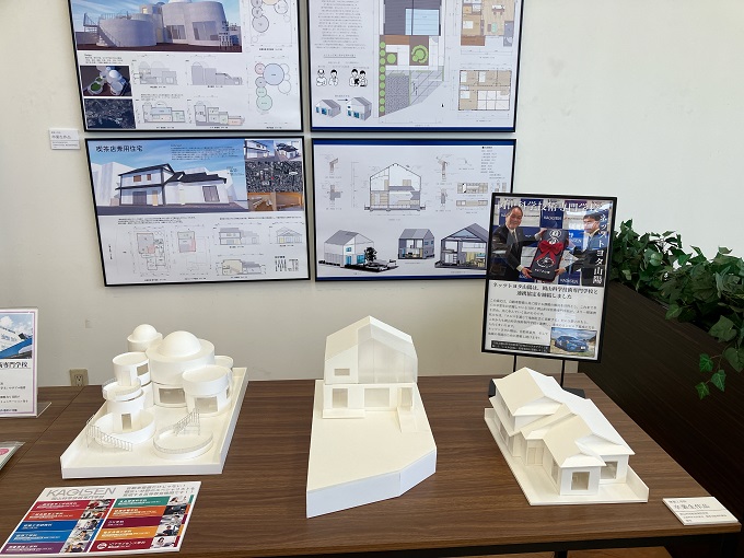 意外な場所に建築工学科の学生作品を飾ってきました。