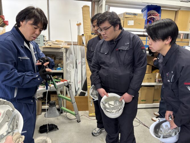 若林電設さんの説明に学生の緊張した表情が和らいでいました。
