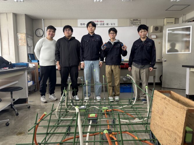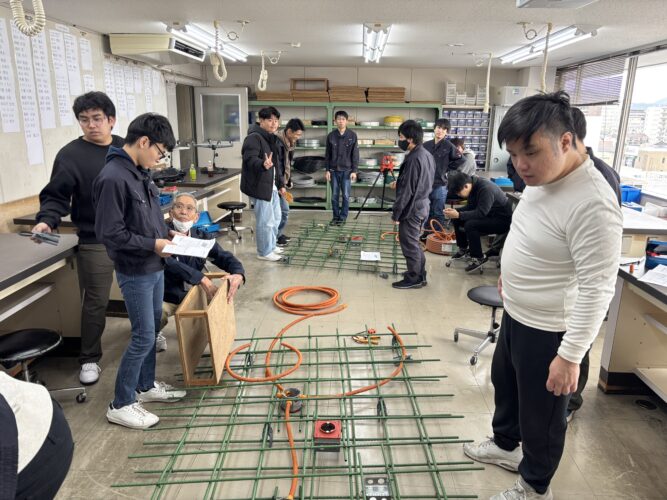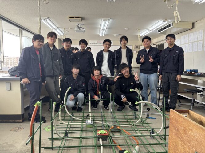 二年生のスラブ(床)配管実習の様子を紹介します。