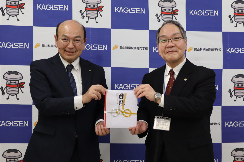 寄贈式には、三備ホンダ販売株式会社のサービス推進部 大津寄部長、本学から大月校長をはじめとする教職員などが出席いたしました。