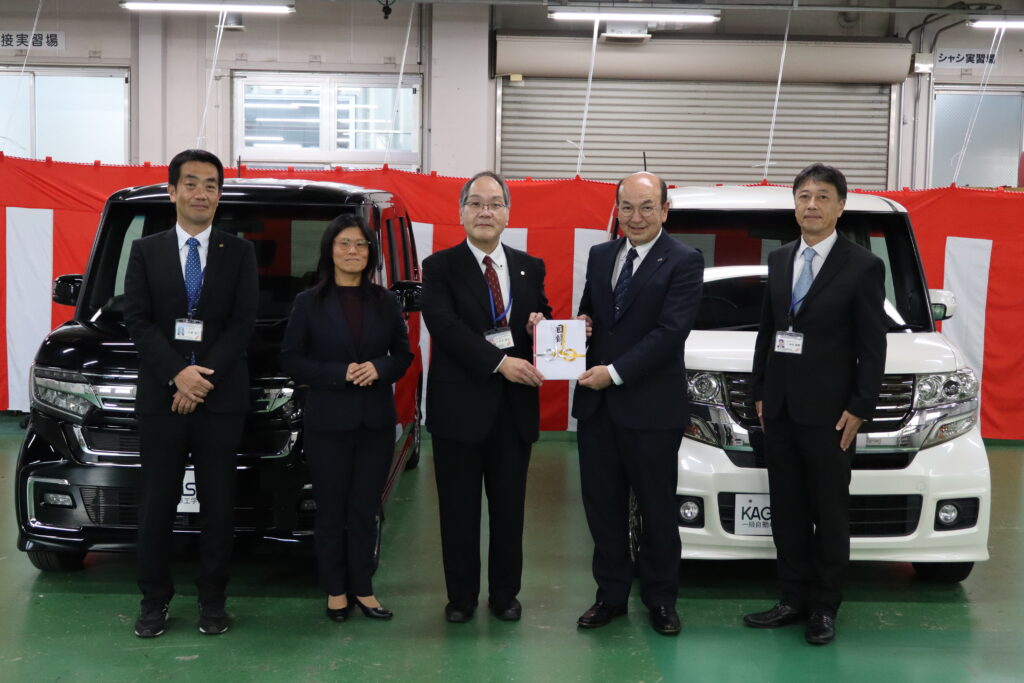 三備ホンダ販売株式会社様より実習車両としてN-BOX 2台を寄贈いただく運びとなり、令和7年11月21日(金)に寄贈式が執り行われました。